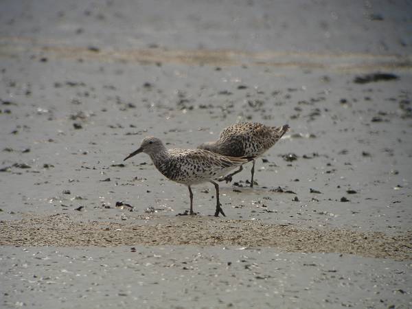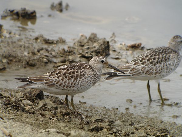 奧がオバシギ、手前がコオバシギ